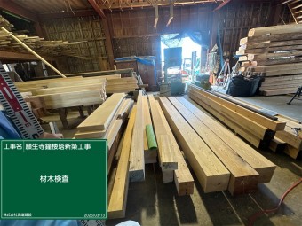 ★★願生寺鐘楼塔新築工事が始まります★★ 材木検査を行いました。